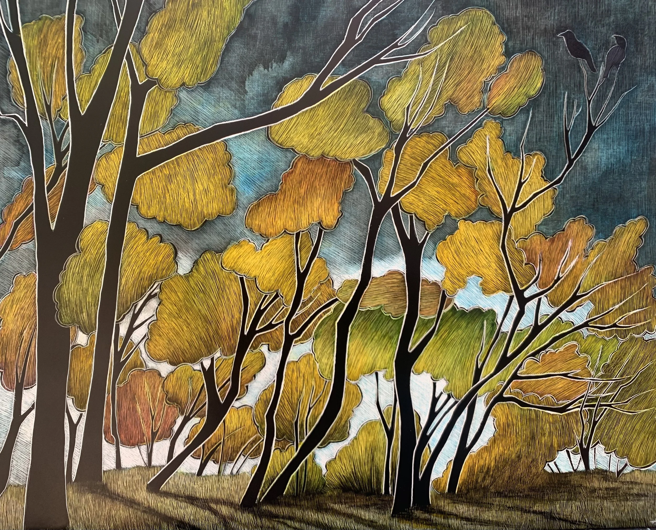 “Bright Tree” | Tinted scratchboard | 18” x 24” | Framed | $1200